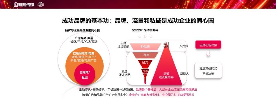 谈及品牌构建,张继学强调需重新厘清品牌、流量与私域的关系:三者实为企业增长的“同心圆”,需协同发力筑牢护城河——既要精耕私域运营沉淀用户粘性,又要打通流量与渠道实现高效转化,更要强化品牌势能抢占心智高地,同时深耕线下渠道夯实消费触点。