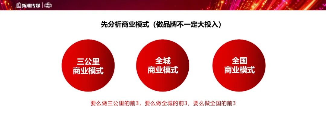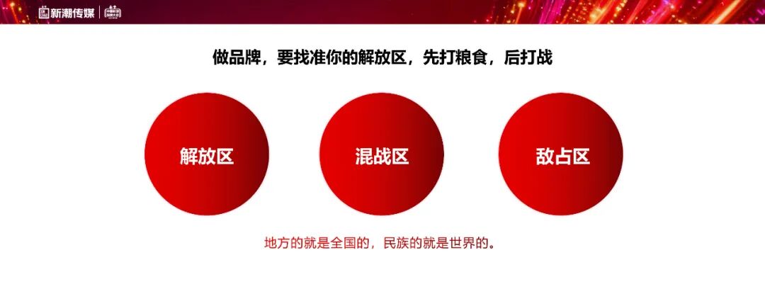 全国商业模式:针对全国扩张的品牌,切忌盲目“全面开花”。张继学强调,企业应优先建立“解放区”(即能稳定盈利的核心城市),再以“解放区”为基础向“混战区”(竞争激烈但有机会的市场)、“敌战区”(暂不具备优势的区域)逐步渗透,避免因资源分散陷入无意义的内卷。