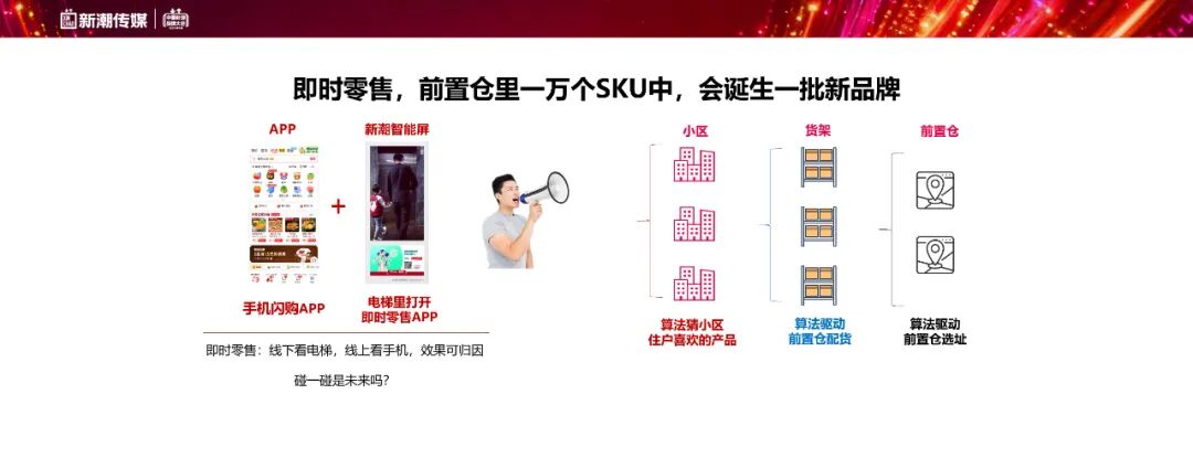 技术变革正在重新定义零售行业,即时零售催生出新的形态流量和新渠道,将会诞生出新的品牌。张继学分析到,线下零售时代诞生了茅台、五粮液等品牌;货架电商时代成就了三只松鼠、韩衣舍;社交电商时代催生了完美日记、鸭鸭羽绒服;而今天,”即时零售时代是1万个SKU在竞争,而这1万个SKU中会诞生新的品牌“,这也是即时零售时代的重大机遇。